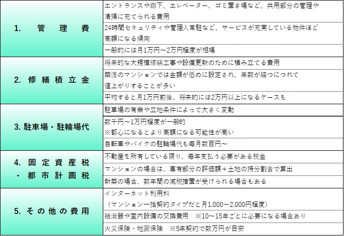 1.マンション購入後にかかる主な維持費